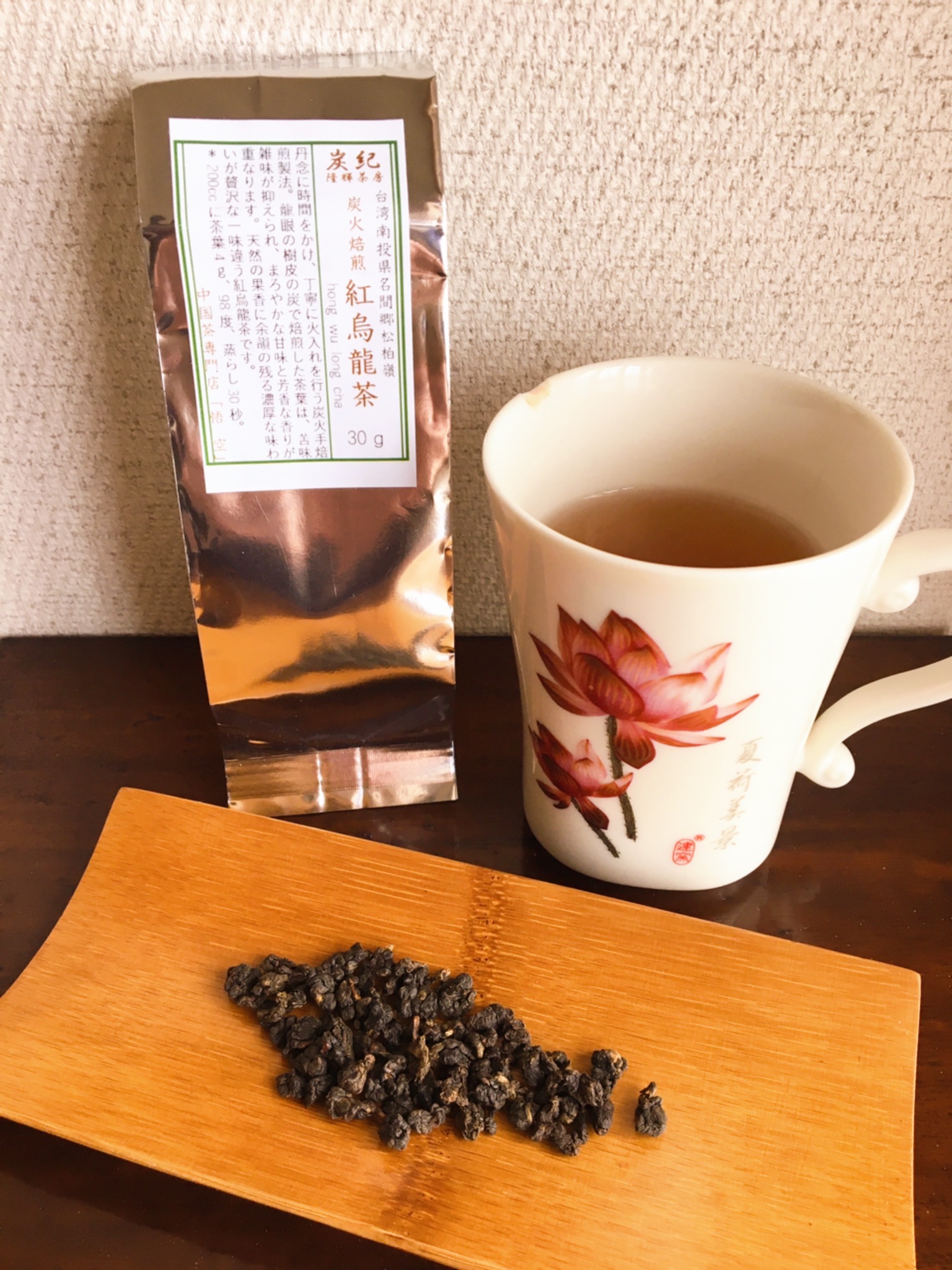 紅烏龍茶というのも飲んだことがないのに、こちらは炭火焙煎とのこと。しかも龍眼の樹皮の炭で焙煎。よくわからないものの、なんだかすごく美味しそうということは伝わってきます。