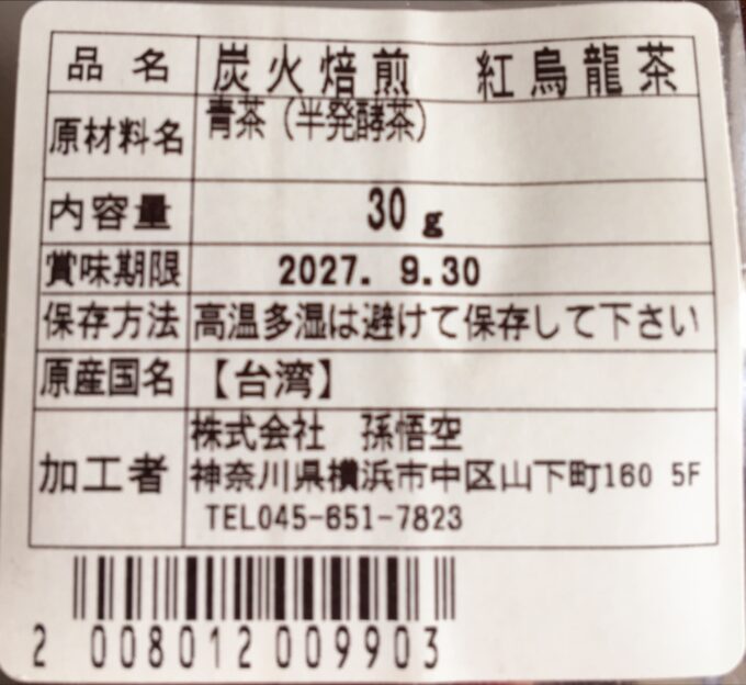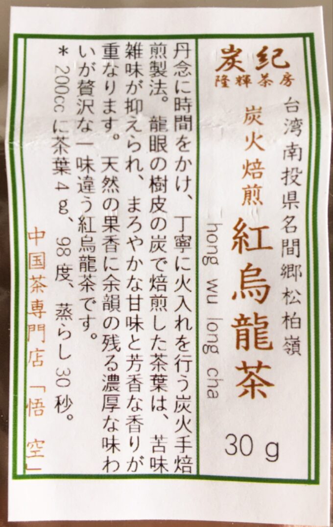 【悟空茶荘】炭紀隆輝茶坊 炭火焙煎 紅烏龍茶 30g ¥990(税込)