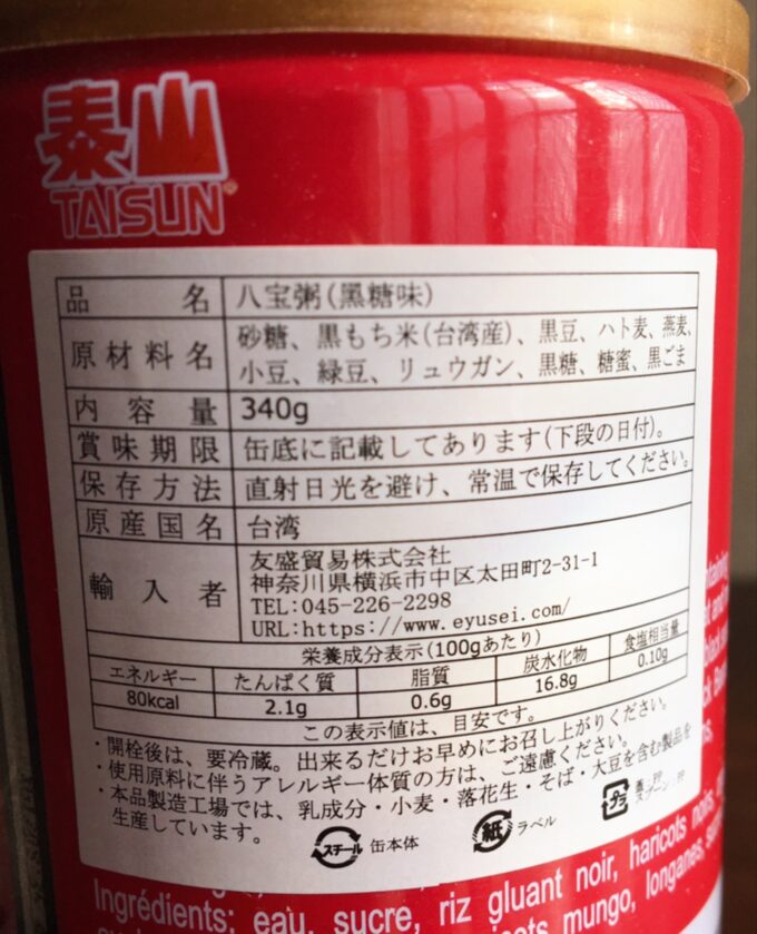八宝粥(黒糖味) 一缶 ¥280(税込)
